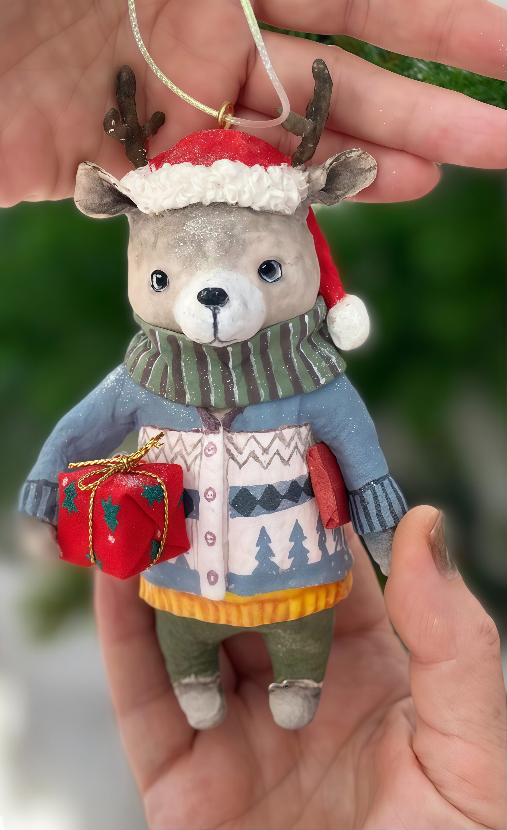 Лосик из ваты, 13 см — игрушка ручной работыОчаровательный лосик, выполненный вручную из ваты — тёплое воспоминание из детства и трогательное украшение для дома. Каждая деталь создана с любовью: от аккуратно вылепленных рожек до уютного шарфика. Высота игрушки — 13 см, она идеально подойдёт для новогоднего декора, подарка или коллекции винтажных фигурок. Почему вы полюбите нашего лосика: